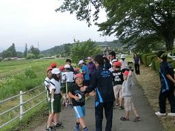 いよいよ植える場所に向かいます。中学生と小学生が並んで行きます。