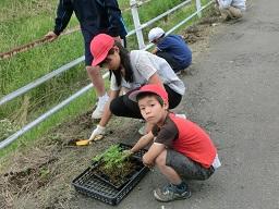 花を植える活動が始まりました。土手に植えますが、日曜日に地域のボランティアの方々が植える所の草を刈ってくれました。