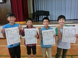 次は6年男子KH君が高跳び1位の表彰、5年男子RM君が走り幅跳び3位、リレー3位の表彰を受けました。なお、データがたくさんありますので、この続きは明日お届けします。