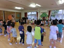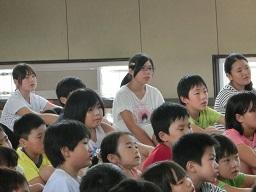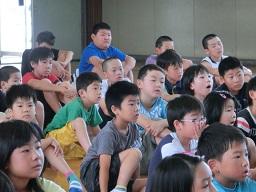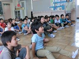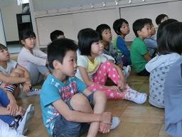 子供たちが真剣に見ているのは、音楽の先生が説明をしているからです。楽しそうな表情の子もいますね。