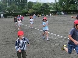 ボール遊びの続きです。おや、小さい子がいます。担任の先生に聞いたら、近所のお母さんが小さい子を連れて遊びに来たそうです。子供たちも喜んで一緒に遊びました。