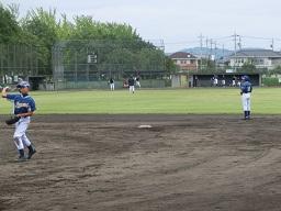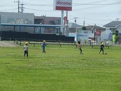 3塁に進んだRM君です。結局この初回に1点を取りました。先取点です。守りの練習です。ライトTWと5年生のHWがキャッチボールをしています。