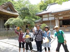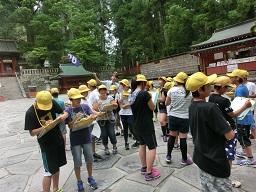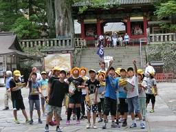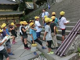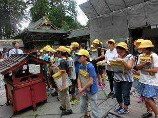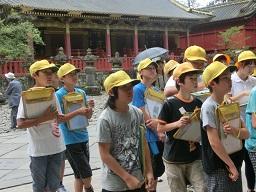 今日、6年生は日光へ校外学習へ行ってきました。まず降りた場所は輪王寺駐車場です。そこでガイドさんと顔合わせをしました。