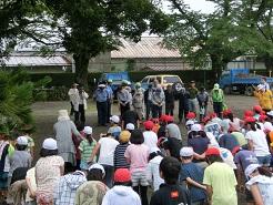 「一生懸命やりました。」ボランティアの代表の方のあいさつがありました。大江川の土手にこれからマリーゴールドが咲いたら、それは小中学生とボランティアの方々が願いを込めて植えた花です。みんなで大切にしたいですね。