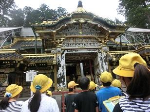 輪王寺は大きく修理の建物で覆われていました。参拝者は中には入れます。子供たちの目的は、東照宮です。
