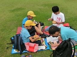 木陰に入ります。捕まえた虫をじっくり観察します。