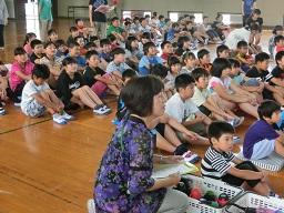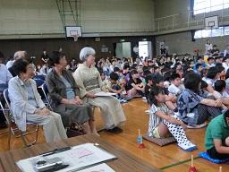 新青い目の人形の歓迎会の練習風景です。1,2年生は2曲練習しています。