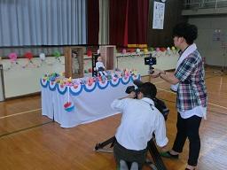 取材は午後2時からでした。だいたい1時間くらいで、子供たちは取材の最後に教室から来て、取材協力をしました。