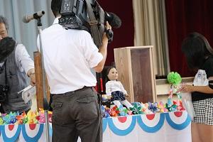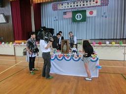 今日の午後、NHKの記者が来校しました。7月13日のスージー歓迎会の取材です。
