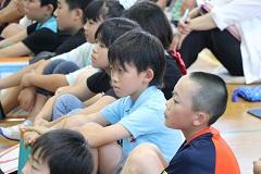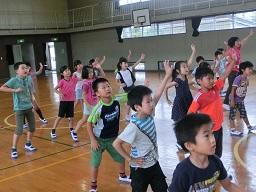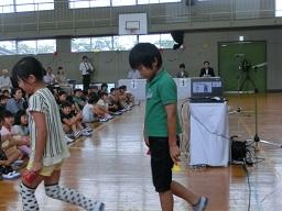 先生の話をちゃんと聞いていますね。動きの練習もステージで行いました。