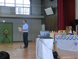 YO君の発表です。民生委員さんも来てくださいました。写真を撮っているのは、T新聞者の記者です。
