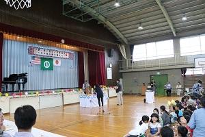 今回は学校でも6台のカメラを用意しています。たくさんの画像があります。本校の教頭がギューリック3世のメッセージを英語と日本語で紹介しました。