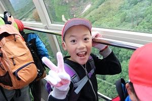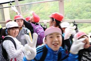 かすかに下界が映っています。万歳をしている子が見えますね。