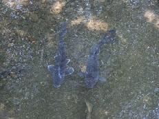 足下の池には鯉が泳いでいました。おなかがすいたなあと思っていると、このマークを見つけました。