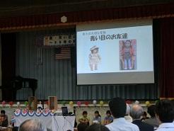 TW君が言います。「ローズィーはサイベリア丸にのって日本に来ました。およそ90年前の事です。」次にST君が続けます。「人形は12791体来ました。栃木県には213体来ました。そのうちの1体が泉小に来ました。ローズィーです。大変大切に扱われました。」