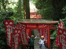 1班ミカン5世の5人組の旅は、佐助稲荷に着きました。みんなで「うわあああーー。」朱色の鳥居がいっぱい。