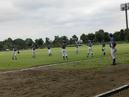 MK君もファーストへ送球練習です。ベンチ前では控え選手が出て見守っています。