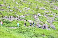 牛ケ首までの登山の様子を別のカメラからお伝えします。このカメラは列の先頭です。