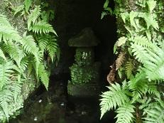 僕たちは佐助稲荷でまず、霊狐泉(れいこせん)に注目しました。立て札には、「古来より麓の村の田畑を潤してきた泉で、今も絶えることなくわき出ている。」と書かれていました。これがその泉です。
