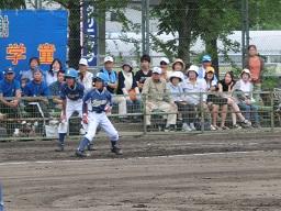 1回表1番バッターが1塁に出ました。続いて2番はキャッチャーRM君です。いい当たりです。センター前にクリーンヒット。続いて3番KW君です。