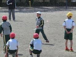 最後の頃、子どもたちも自分の自己紹介をしました。「My name is ○○。I like ○○ 」と話していました。子どもたちが好きな物は(くだもの、スポーツ)が多かったです。「I like play baseball.」と答えた子もいました。