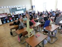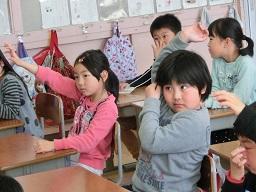 3年生のイングリッシュは5時間目にありました。3年生も腕で○×をやっていました。