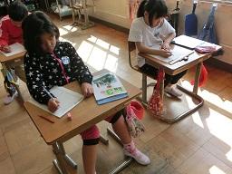 3年生は今日はかけ算九九です。最初ですから3分間で全部終わるのは難しかったようです。