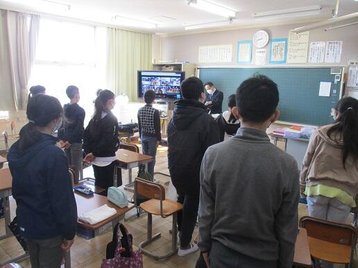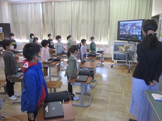 終業式と同じように、クラスごとにそれぞれの教室に分かれて、オンラインで実施