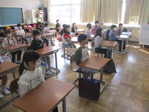 の確認をしました。非常時に備え、クラスごとに校庭への避難の仕方を確認しまし
