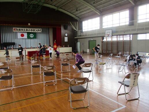 4月11日(月)、5校時に6年生が入学式の式場の設営をしました。6年生の