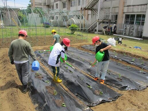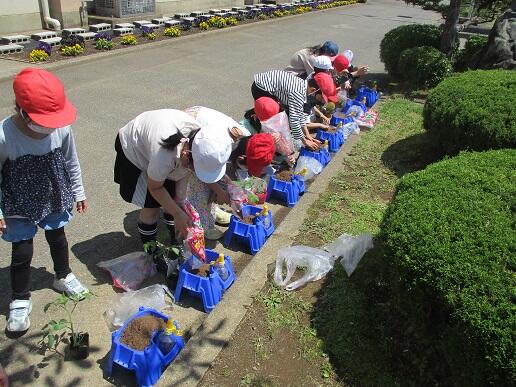 5月2日(月)、2年生が購入体験として、校外学習で買ってきた野菜の苗の植