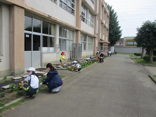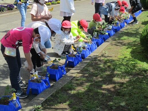 した。今日は、1年生、3年生、5年生がサルビアの苗の植付をしました。5年生