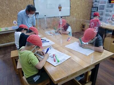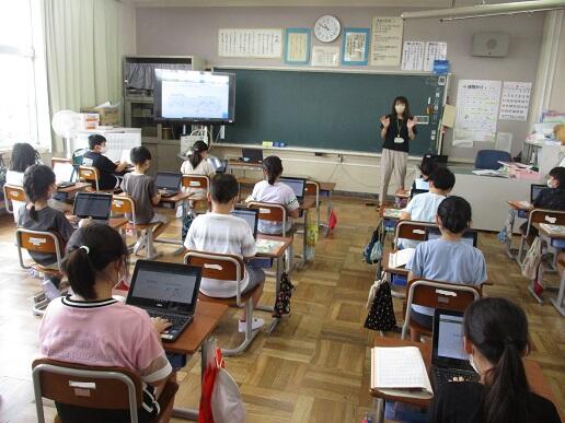 使用して、多目的室とそれぞれの教室で行いました。