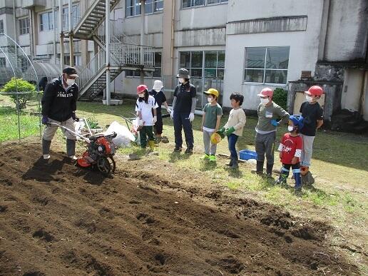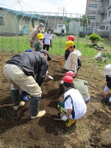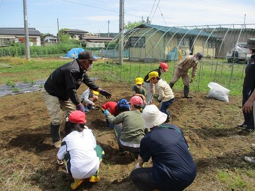応援団(地域ボランティア)の方にご指導いただきながら、土起こしや肥料入れ、