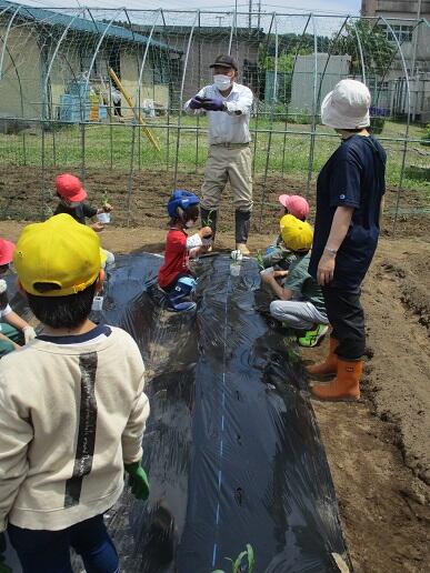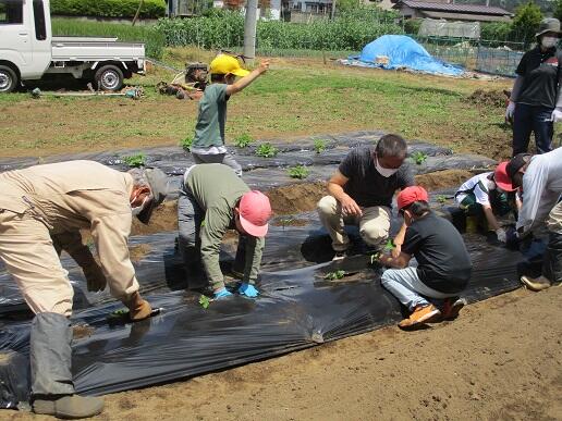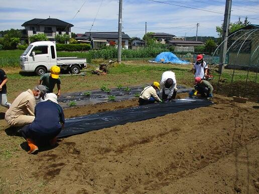 マルチ張り、野菜苗の植付などをしました。