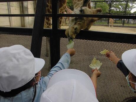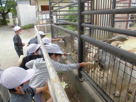 物園を見学したり、動物にえさをあげたりしました。お弁当を食べた後は、