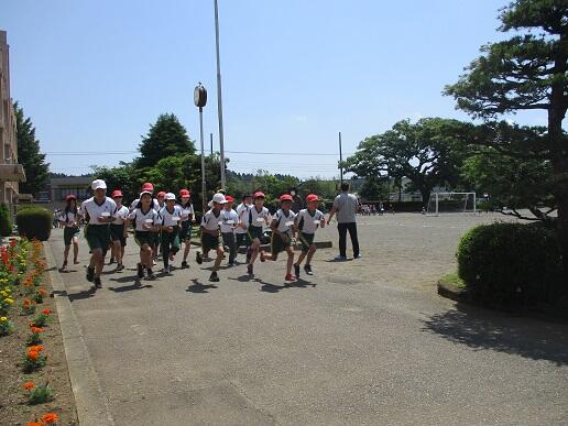 ランタイムを行いました。1~3年生はトラックを、4~6年生は校庭の外側を走