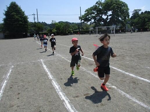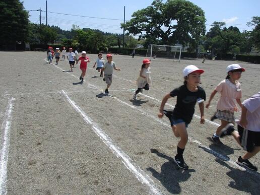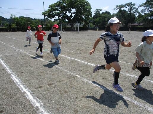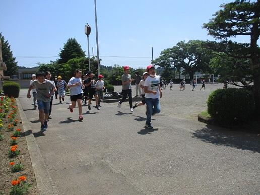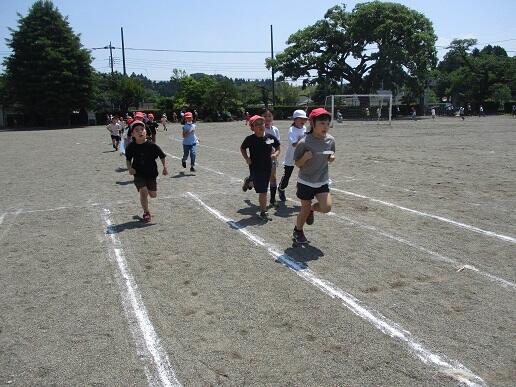 でランランタイムを実施しました。1~3年生はトラックを、4~6年生は校庭の
