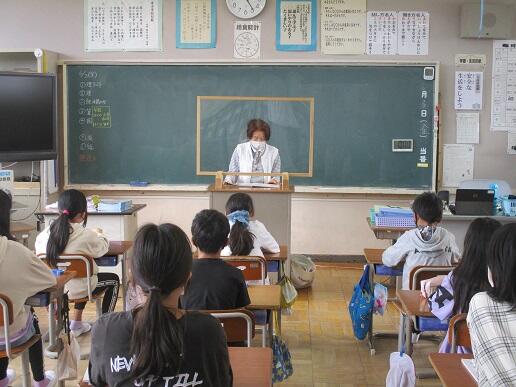 10月5日(水)4校時、矢板中学校の栄養士の先生に来校していただき、5年