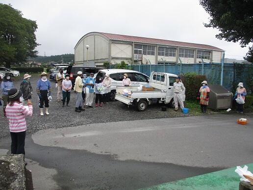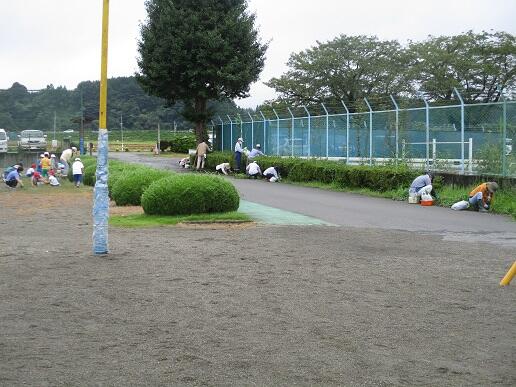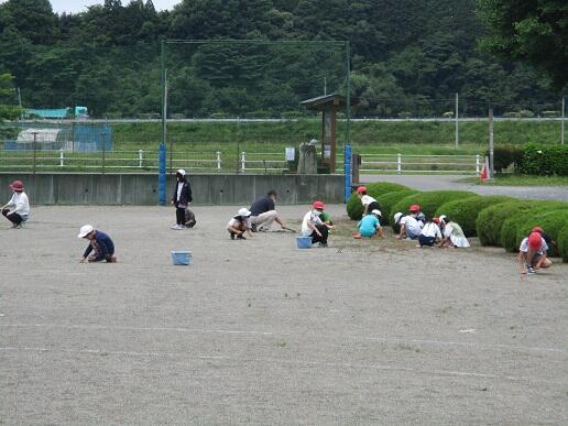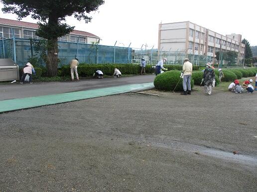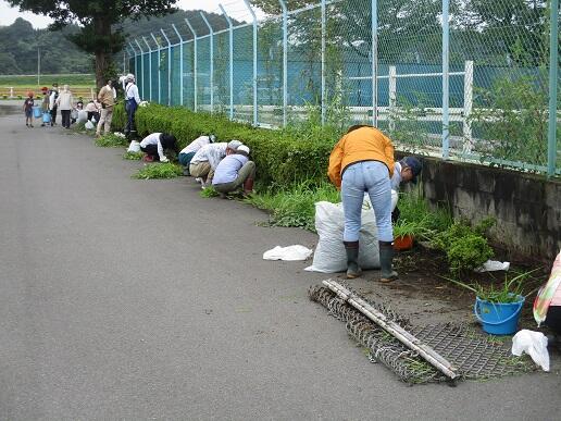 に分担された所の除草をしました。泉小学校応援団(地域ボランティア)の皆様も