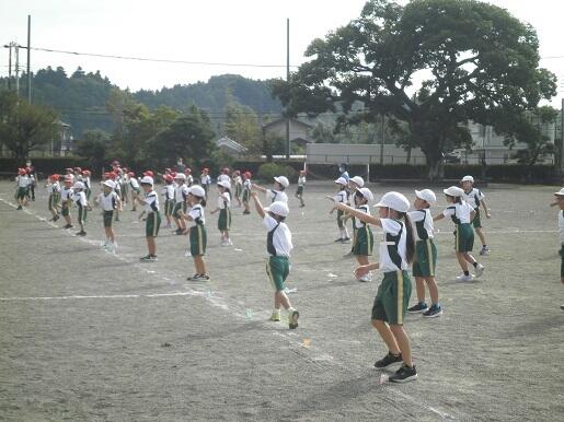 地や立ち位置の確認と集団行動を行いました。