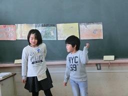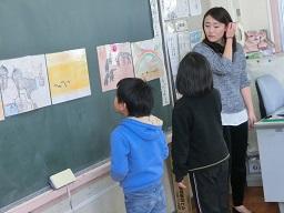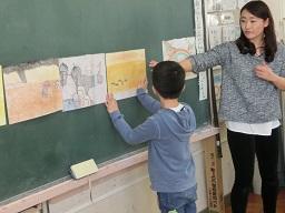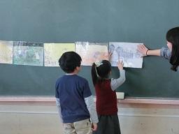 黒板の絵は子どもたちが書きました。顔もクラスの子を全部描いたと言っていました。