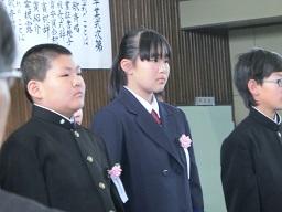次は「別れのことば」です。在校生と対面になって呼びかけます。