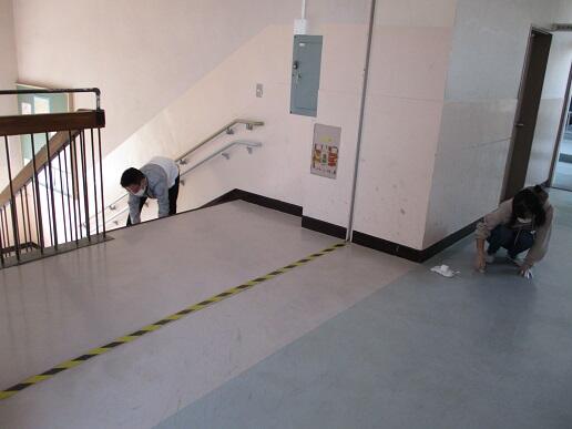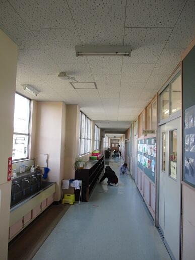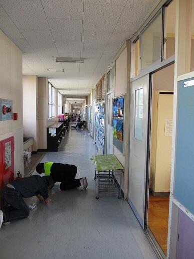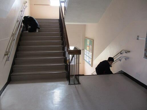 3月16日(火)、6年生が奉仕作業ということで廊下や階段の床磨きをしまし
