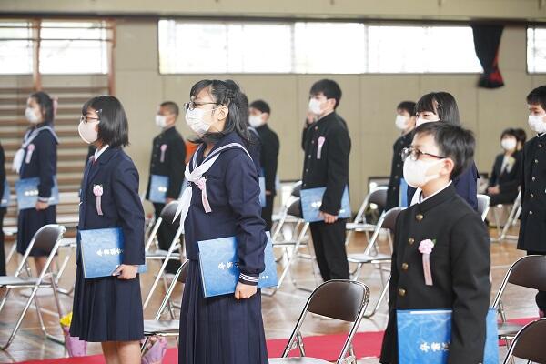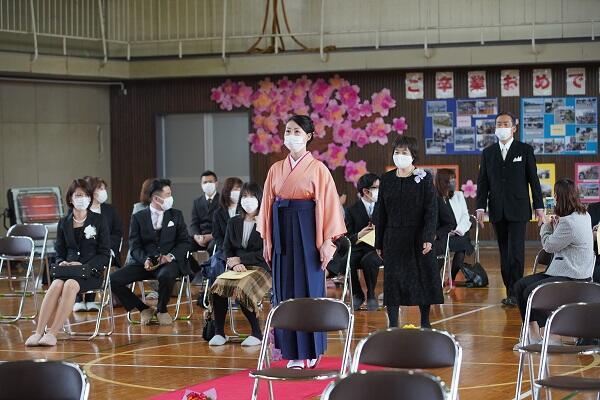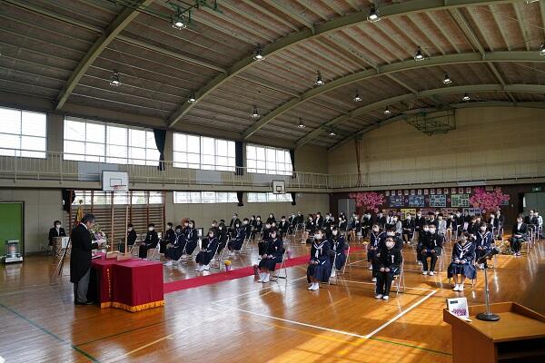 出席したのは、26名の卒業生と保護者、教職員と市教育委員会です。在校生のいない卒業式