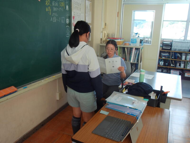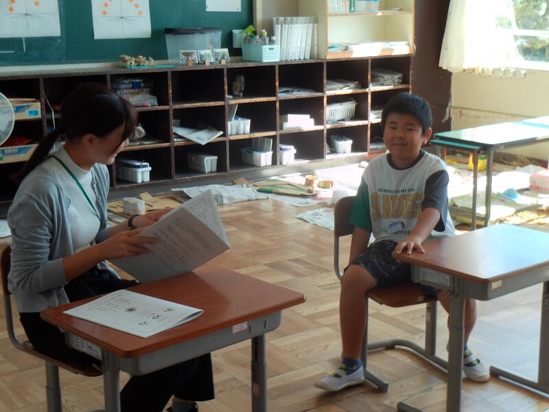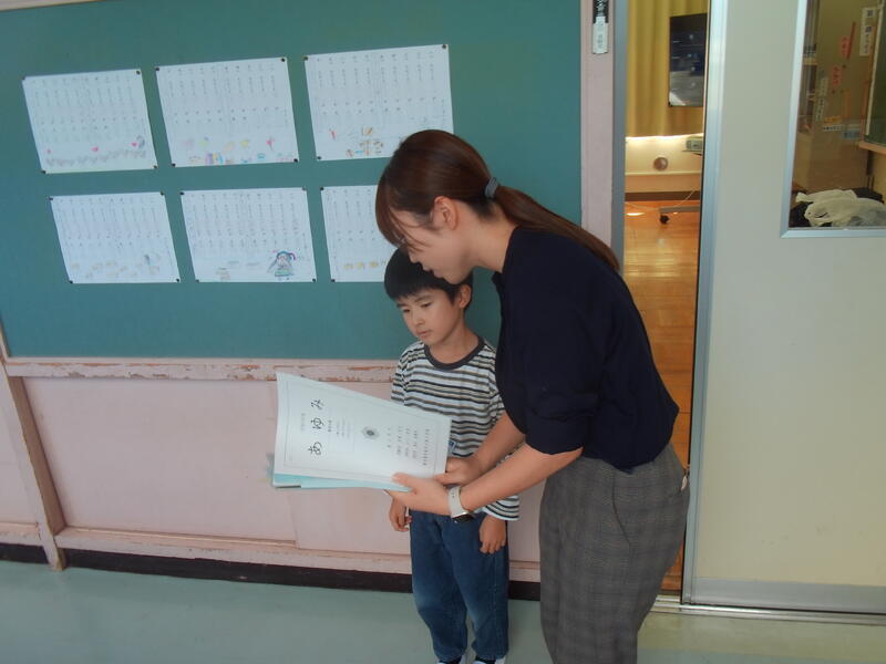 その後、子どもたちに担任よりコメントをつけながら「あゆみ」を渡しました。1年生にとっては入学して初めての「あゆみ」でした。「あゆみ」は担任からの励ましのメッセージです。ぜひ、ご家庭でも「ここがんばったね」「ここは2学期がんばるといいよ」など励ましのコメントをお願いします。