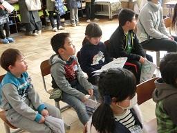 絵を黒板に貼って、その訳を話しました。この場面は真ん中頃のお話だと言っています。