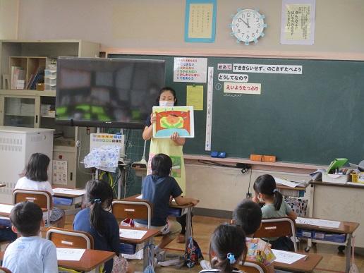 大きな身振り手振りを交え、小学生にもわかりやすい内容の噺で、みんな大笑いになりました。