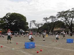 各班それぞれに、「おにごっこ」や「ドッジボール」、「ケイドロ」などで遊びましたが、一番人気があったのは「ドッジボール」でした。