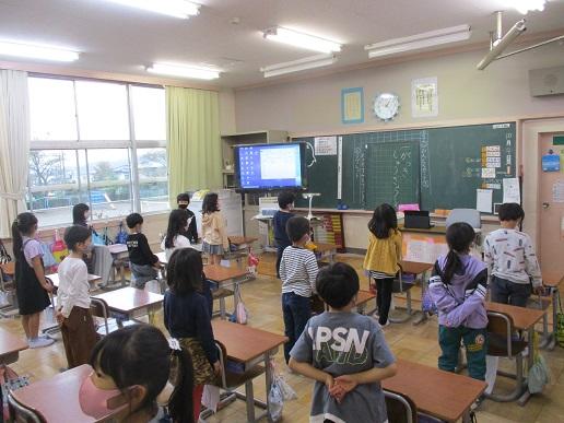 1学期の終業式と同様、この始業式も1年生と3年生の児童がめあてや目標についての作文発表を行いました。